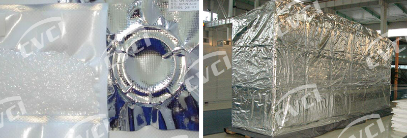 采用該產(chǎn)品包裝金屬制品后,可有效阻隔外界氧氣、水蒸氣、腐蝕性氣體、灰塵、陽光等進入包裝空間。在密封條件下可有效防止金屬銹蝕,并減緩橡膠、塑料等非金屬材料的老化變質(zhì),用于各種器材除氧、干燥、真空封存包裝,特別適用于電子、光學、儀表等精密器材的長期封存;也可用于大型設(shè)備、發(fā)動機、齒輪箱等大件器材的封套封存。